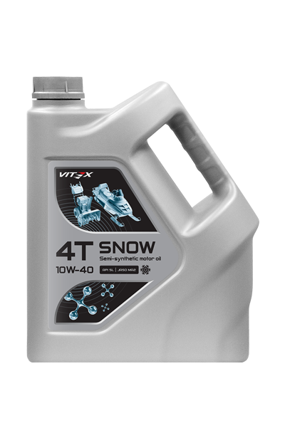 Полусинтетическое всесезонное моторное масло Vitex Snow 4T 10w40 (4-stroke semi-synthetic motor oil)Предназначено для применения в современных четырехтактных двигателях снегоходов, квадроциклов, мотоблоков, минитракторов, снегоуборочной и прочей техники. Содержит сбалансированный пакет присадок, обеспечивающий надежную защиту двигателя даже в экстремальных условиях эксплуатации. Обладает хорошей прокачиваемостью, гарантирует легкий пуск при низких температурах. Отличается улучшенными антиокислительными, противоизносными, антикоррозионными и антипенными свойствами. Предотвращает образование шлама, нагара и лаковых отложений. Способствует продлению ресурса работы двигателя.
